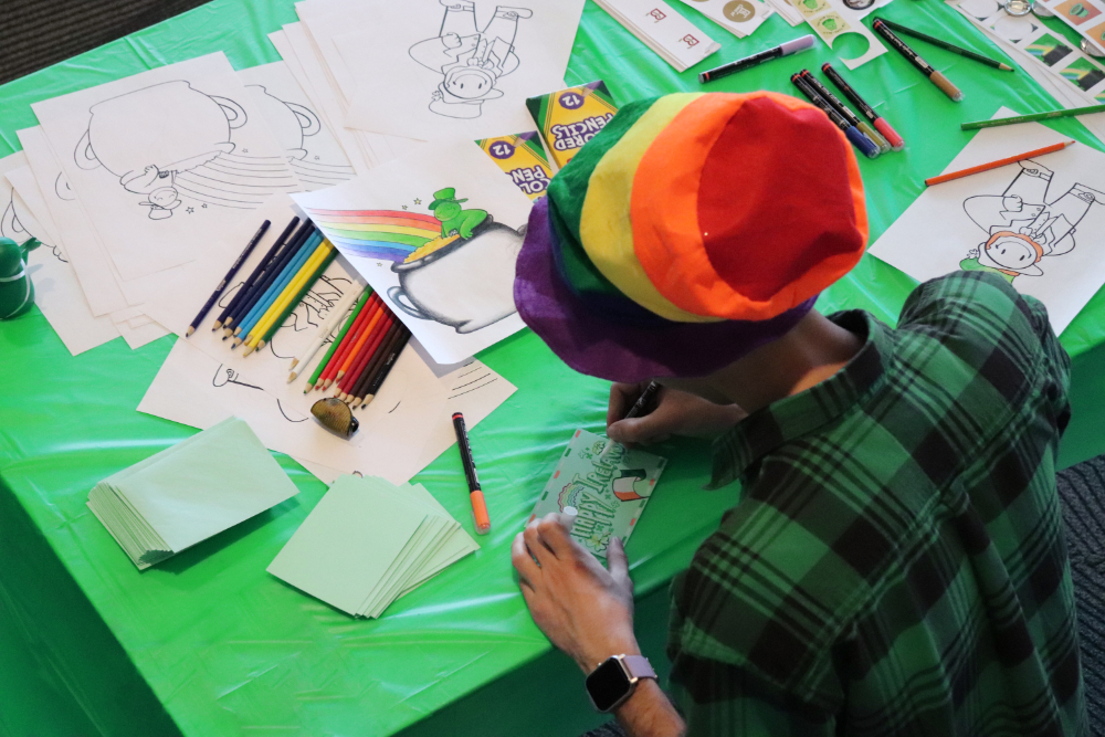 Join the creatives for a day full of rainbows and luck! Find themed designs exclusive to the Creatives on buttons, stickers, and colored sheets; grab yourself some and stick around for a root beer float!